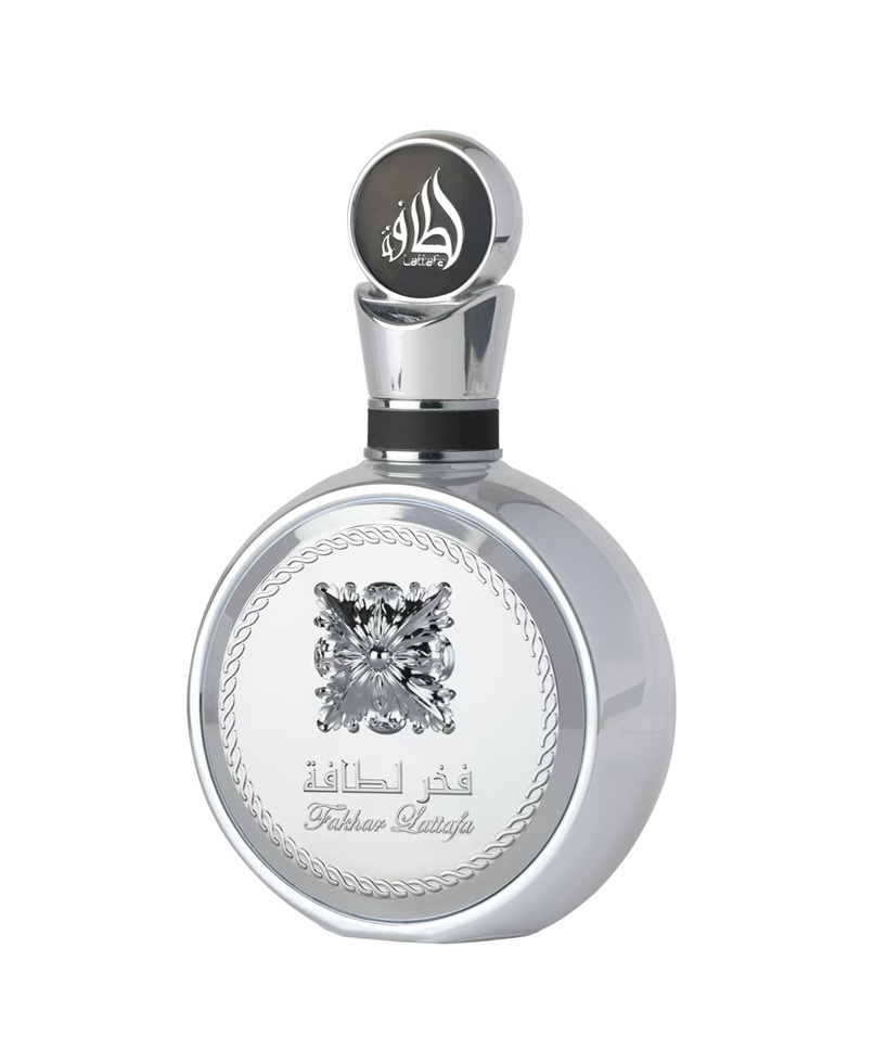 Fakhar Platin by Lattafa Perfumes is a Aromatic Fougere fragrance for women and men. This is a new fragrance. Fakhar Platin was launched in 2025. Top notes are Bergamot, Pink Pepper and Cardamom; middle notes are Guava, Lavender and Ginger; base notes are Palo Santo, Incense and Sandalwood.